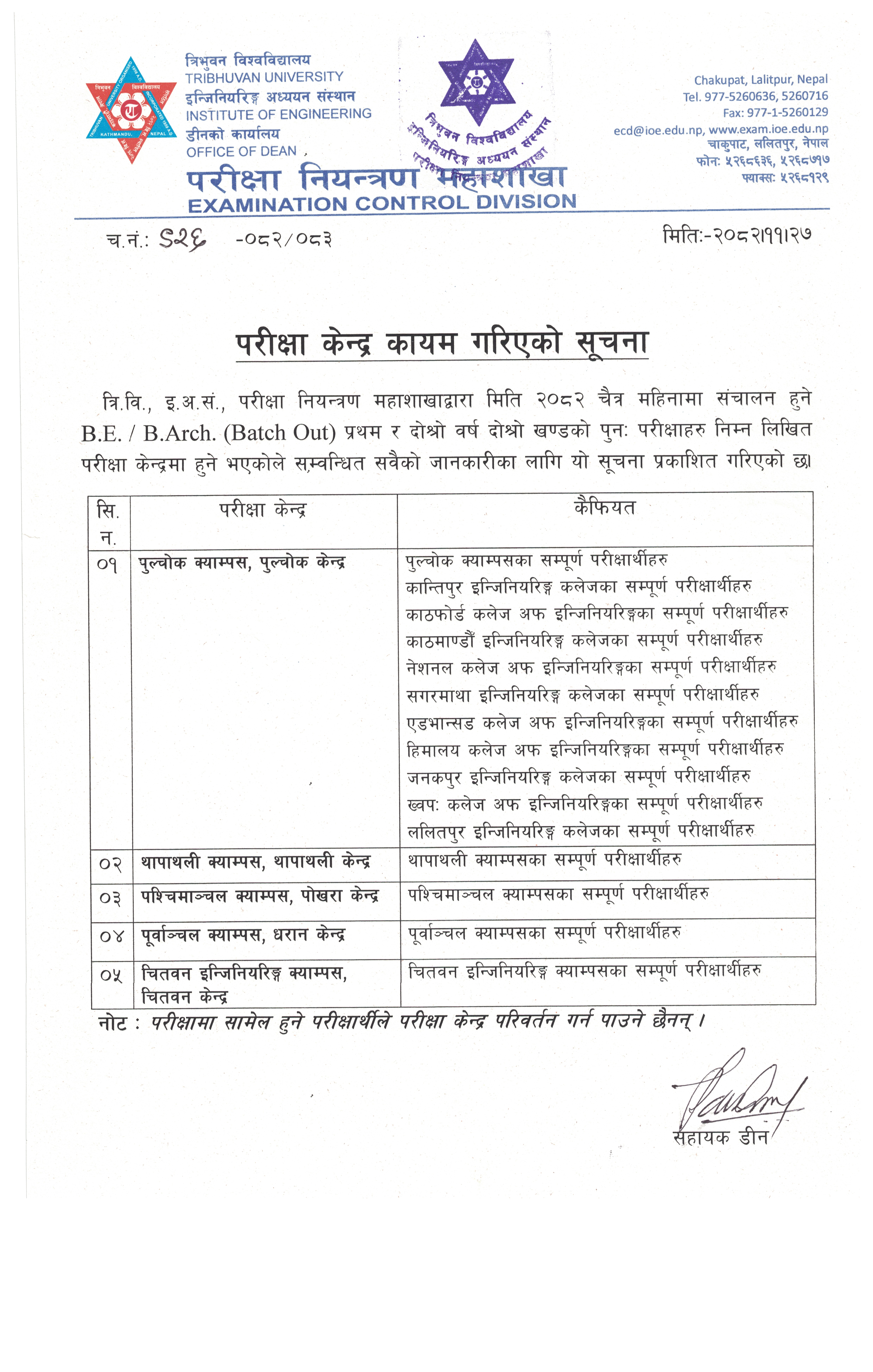 Examination Control Division, Institute of Engineering