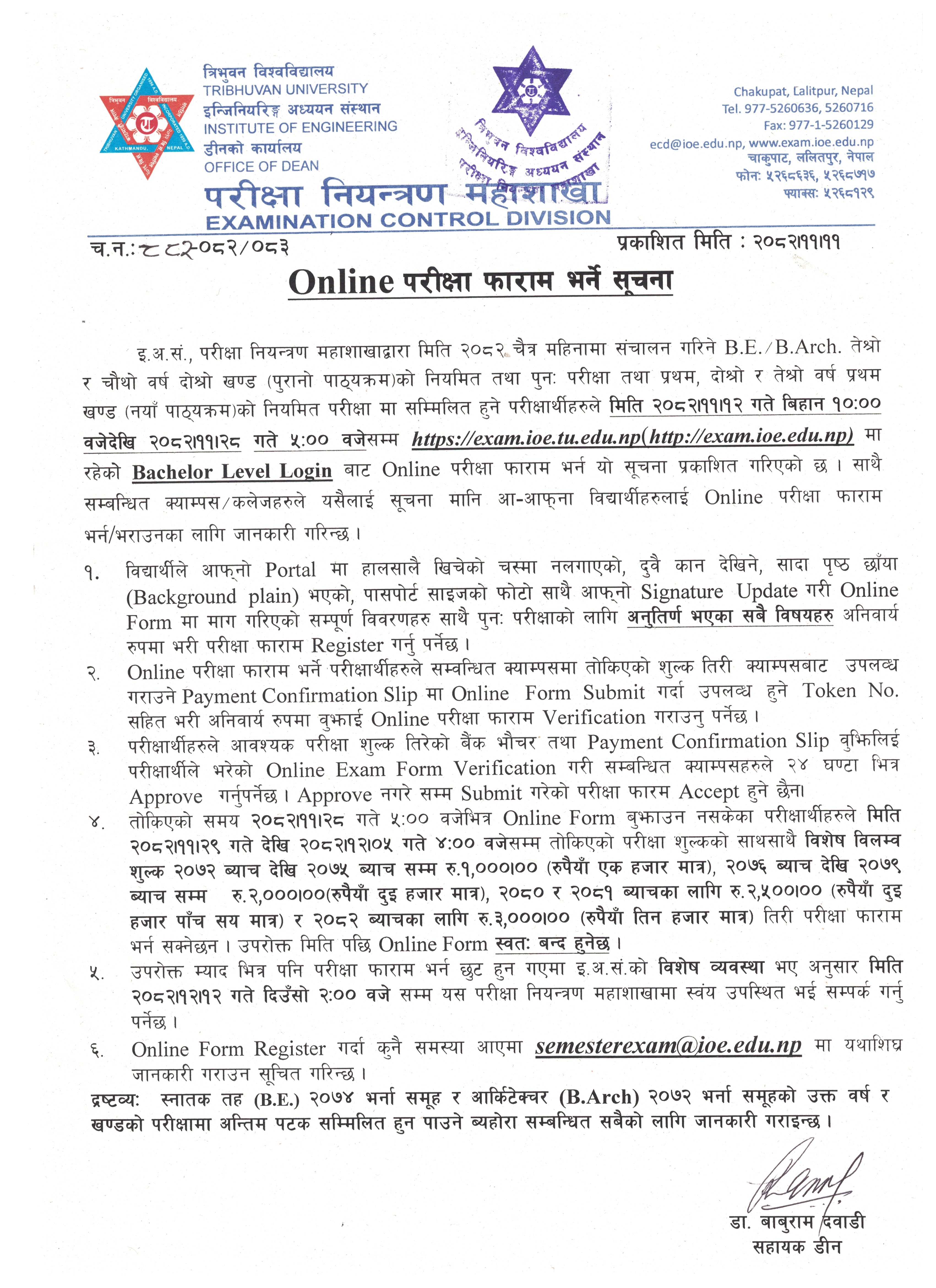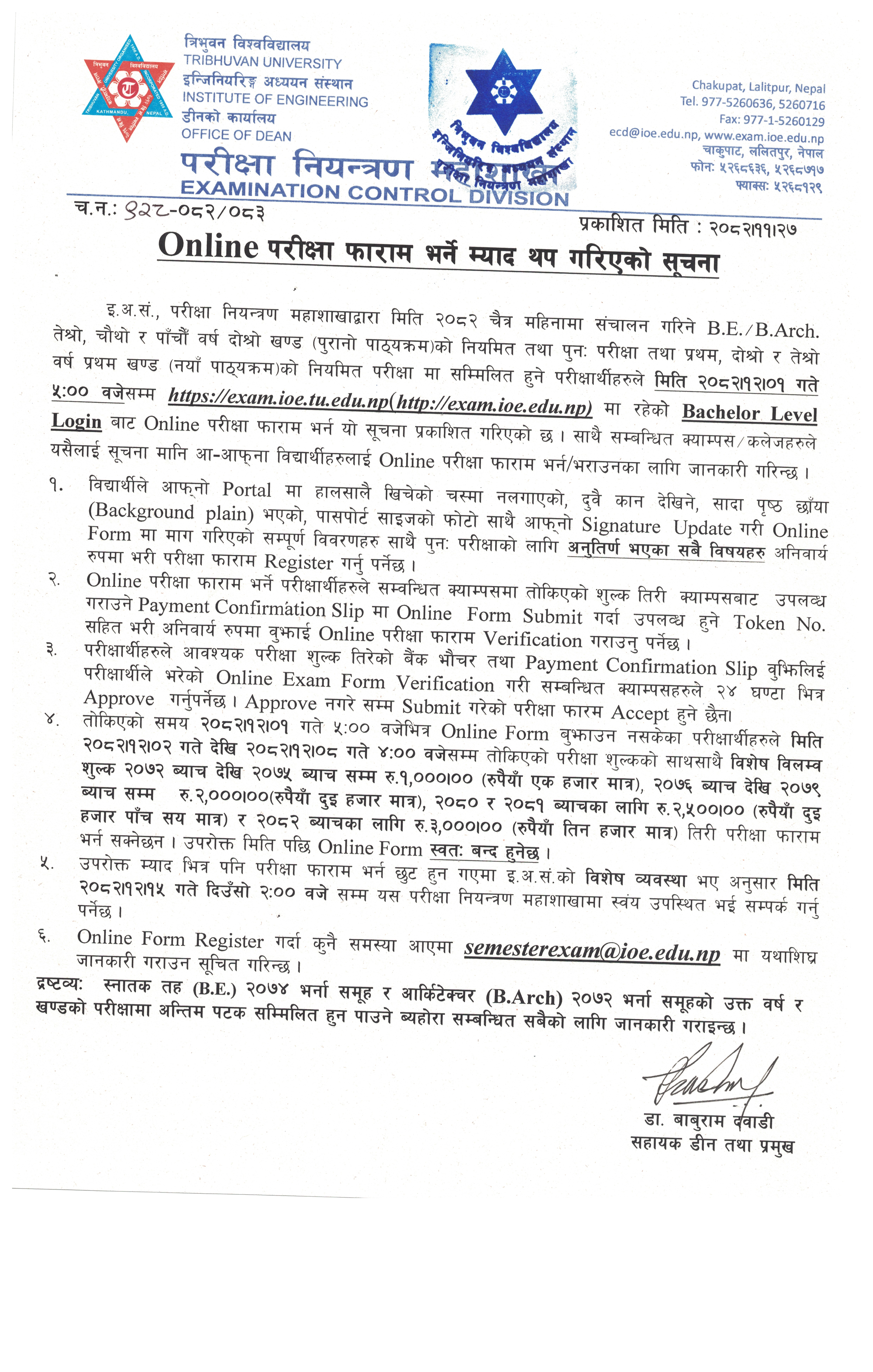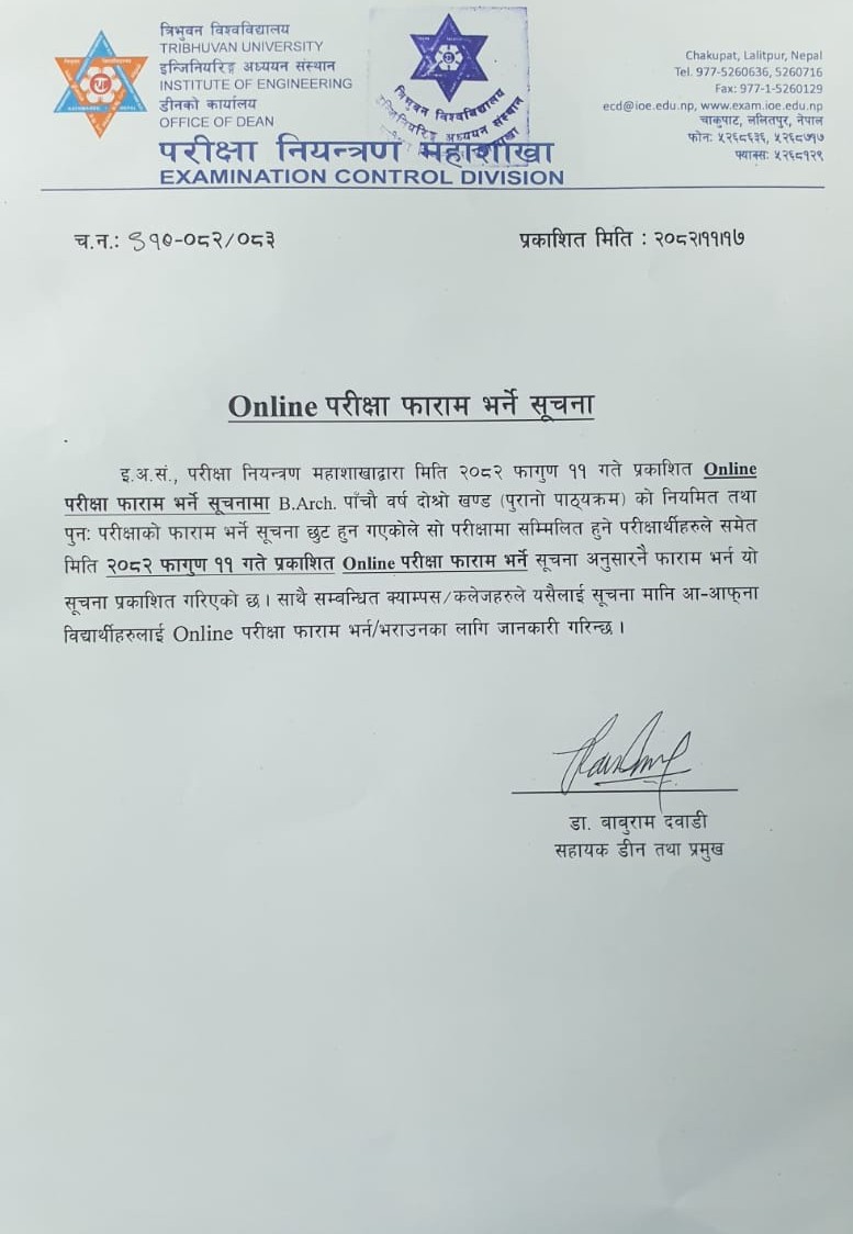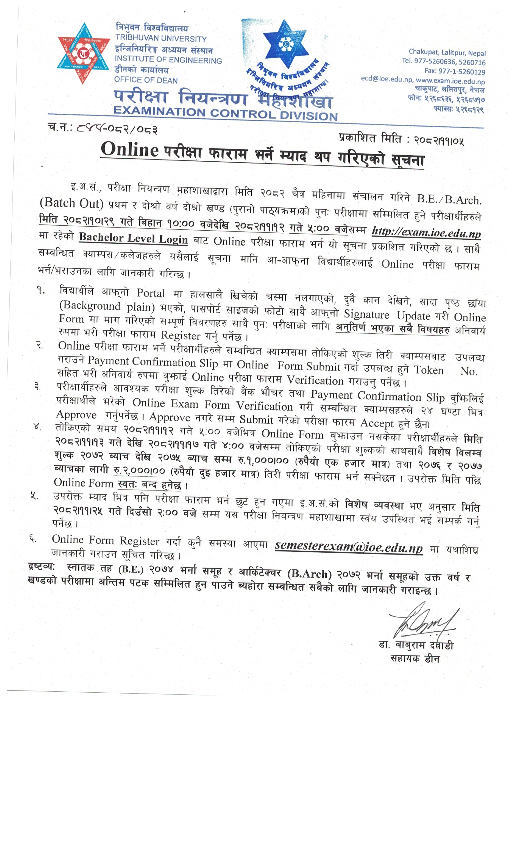 Exam Form Date Extended Notice for I and II Year II Part Batch Out