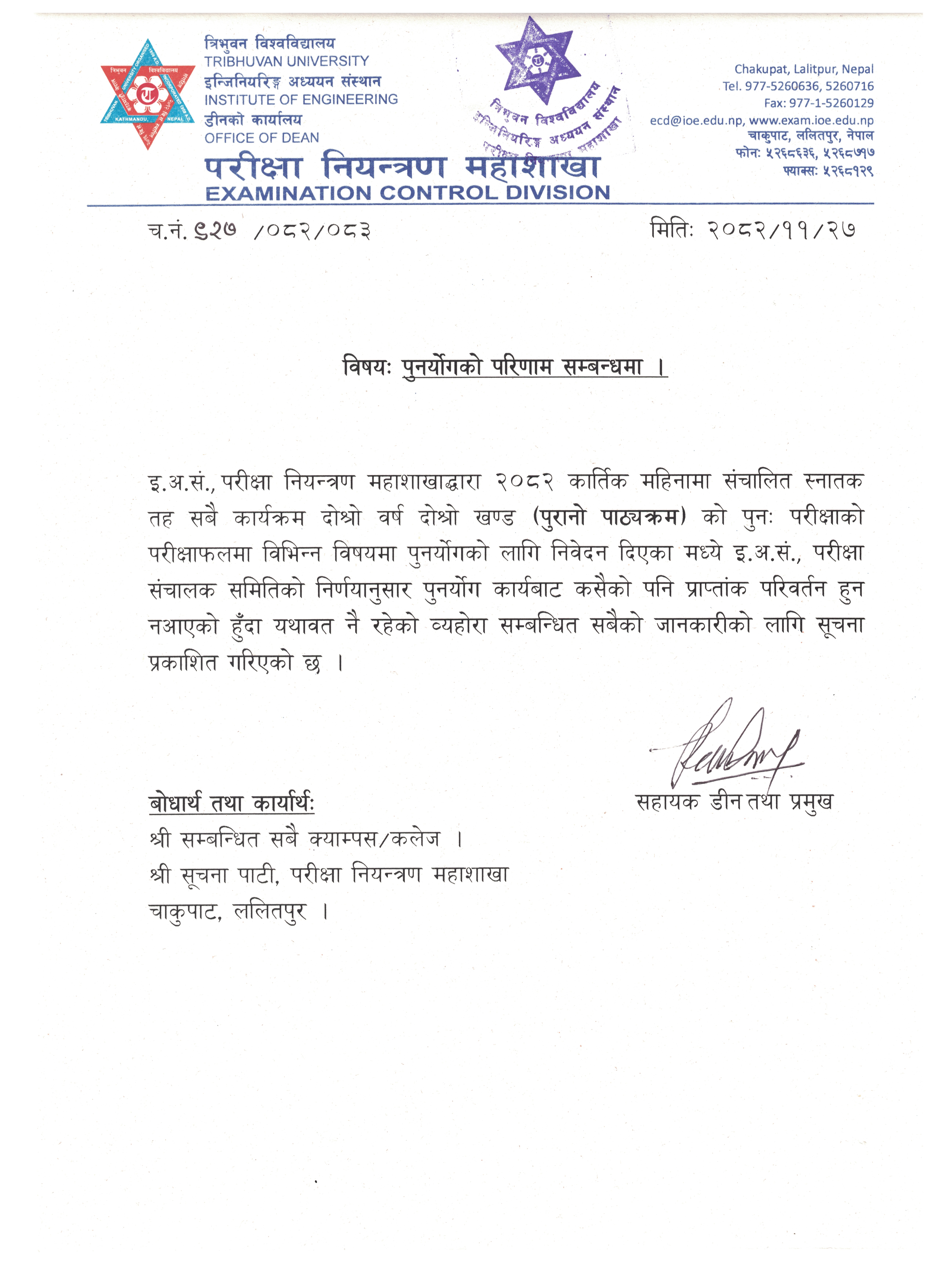 Result BE/BAR Third Year First Part 2082 Bhadra (Regular/ Back)