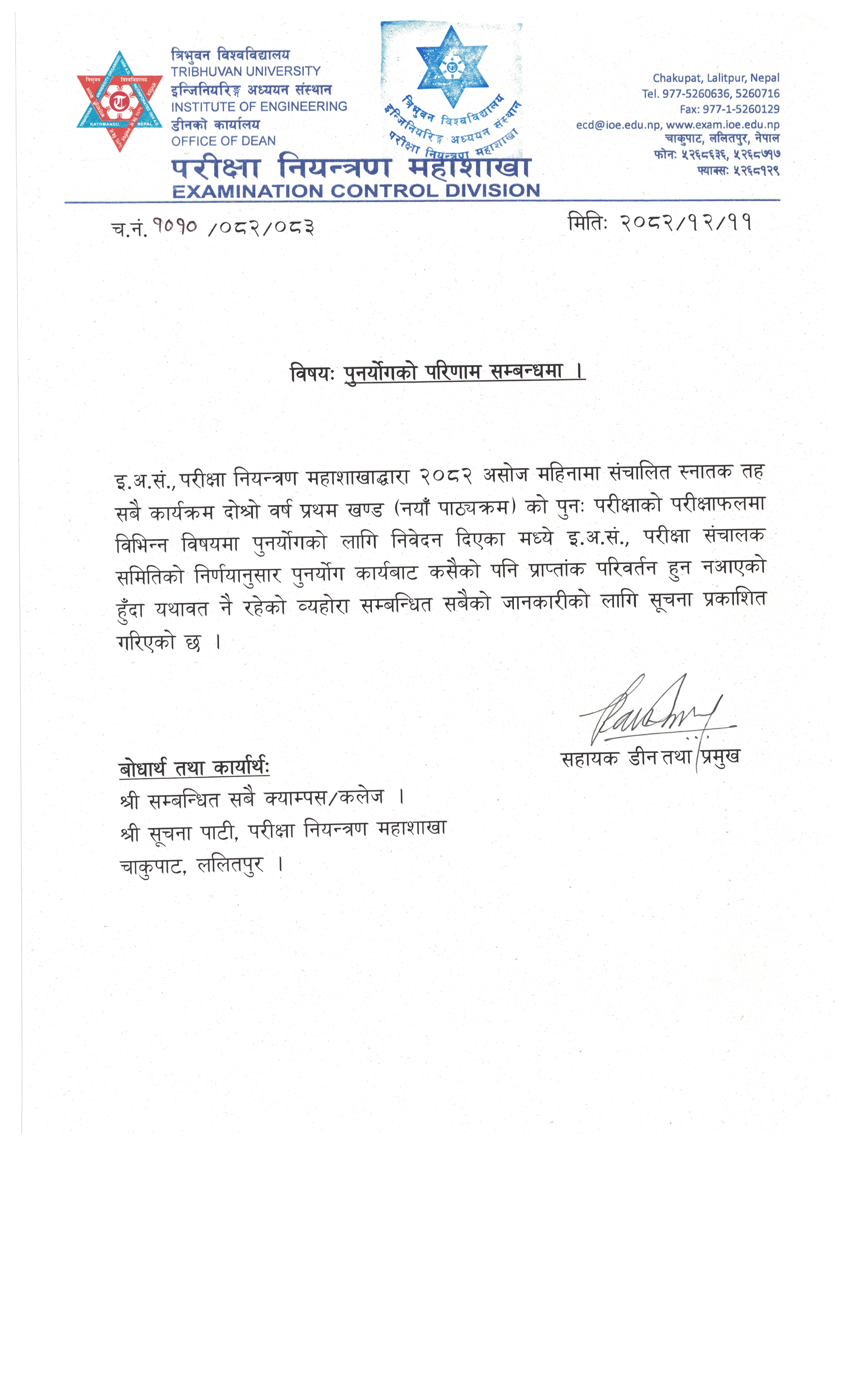 Result BE/BAR Third Year First Part 2082 Bhadra (Regular/ Back)