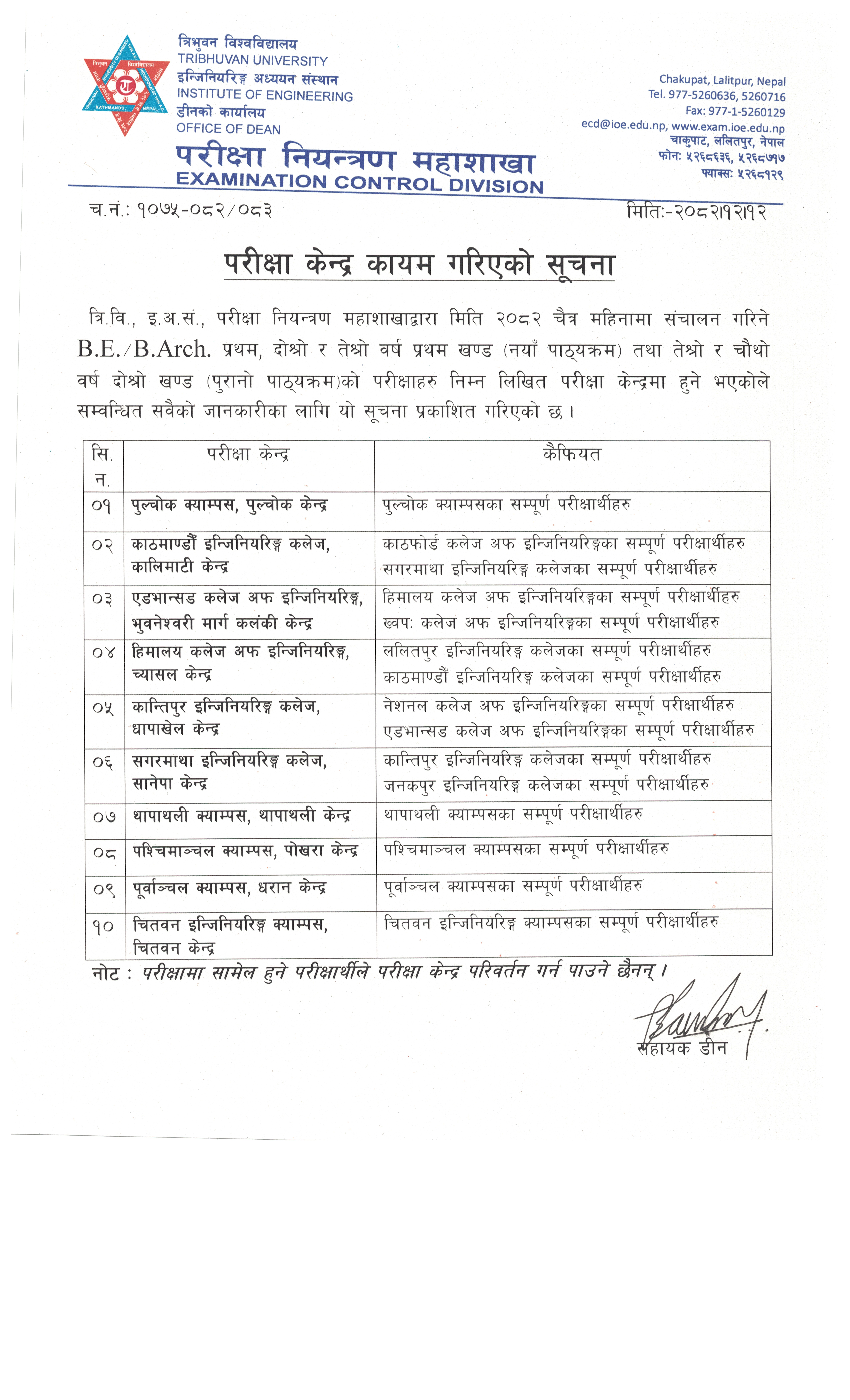 Result BE/BAR Third Year First Part 2082 Bhadra (Regular/ Back)